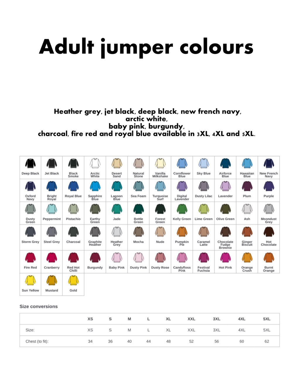 Please choose your colour of jumper or tee